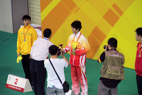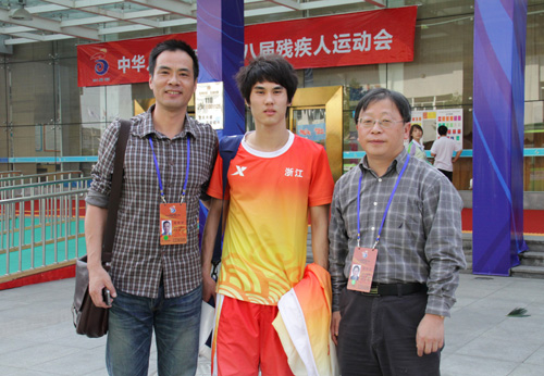 10月15日下午4时,第八届残运会200米自由泳S15级全国纪录被打破,我校学生徐家晖以2分0秒45的成绩刷新了之前由他自己创下的全国纪录,将本届残运会第二块金牌收入囊中。我校副院长钟晓敏亲自到绍兴的游泳赛场观看了这次比赛,并对徐家晖的再度夺冠表示了祝贺。