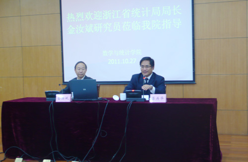10月27日下午,浙江省统计局局长金汝斌研究员受聘为我校兼职教授。聘任仪式在学术中心第二报告厅隆重举行,院长王俊豪为金汝斌局长颁发了兼职教授聘书,副院长苏为华主持聘任仪式。
