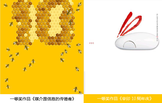 浙江省第十届大学生多媒体作品设计竞赛决赛于2011年11月18日在浙江师范大学举行。我校艺术学院林洲老师指导并带队参赛的4件作品取得佳绩,其中,08平面班蒋瑶珏同学的作品《辛卯10周年庆》和俞俊艳同学的作品《媒介是信息的传递着》获得平面组一等奖,08平面班林玲平同学的作品《无限可能》和王淦萍同学的作品《盛宴》获得平面组三等奖。