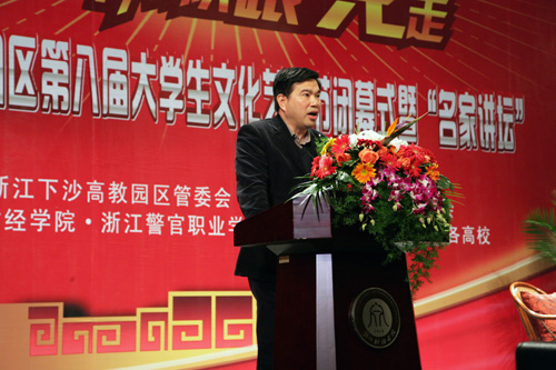 12月6日下午,2011年下沙高教园区第八届大学生文化艺术节闭幕式暨“名师讲坛”在我校文化中心隆重举行。此次大学生文化艺术节闭幕式由浙江下沙高教园区管委会、杭州经济技术开发区管委会主办,浙江财经学院、浙江警官职业学院承办。浙江省教育厅、杭州经济技术开发区管委会相关领导,我校党委副书记王宇航等下沙高教园区14所高校相关领导出席了本次活动。