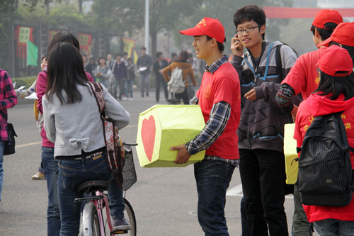 学生志愿者在校园开展“一元钱工程”募捐活动