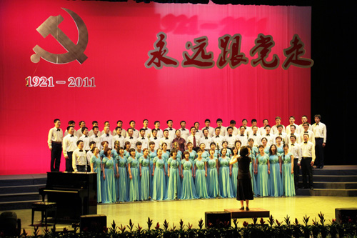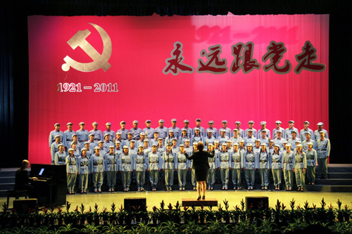 7月1日 学校隆重举行庆祝建党90周年大会暨“永远跟党走”红歌合唱大赛