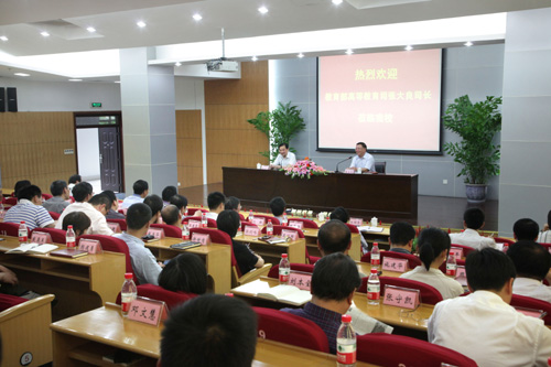 5月18日下午,教育部高等教育司司长张大良应邀来我校作报告,传达和宣讲全面提高高等教育质量工作会议精神,并对《关于全面提高高等教育质量的若干意见》进行了深入分析和详细解读。校党委书记韩翼祥主持会议,校领导、相关职能部门负责人、教师代表等参加了报告会。