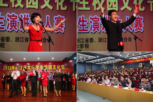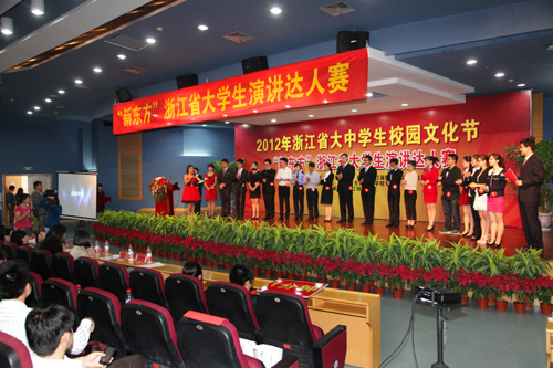10月19日,由浙江省文明办、浙江省教育厅、共青团浙江省委、浙江省学生联合会主办,浙江财经学院承办,杭州新东方进修学院协办的2012年浙江省大中学生校园文化节之“新东方杯”大学生演讲达人赛决赛在我校学术中心圆满落幕。