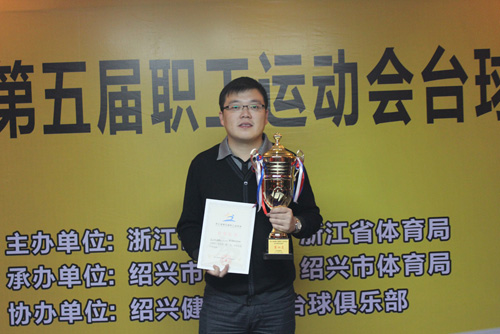 近日,在绍兴举行的浙江省第五届职工运动会台球比赛中,我校财政与公共管理学院陆颋浩老师代表省教育工会代表队参加了斯诺克男子双打比赛,在比赛中陆颋浩老师沉着冷静、奋勇拼搏,赛出了水平、赛出了风格,最终取得了浙江省第五届职工运动会台球比赛斯诺克男子双打第四名的好成绩,为省教育工会代表队和学校赢得了荣誉。