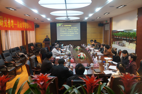 学科负责人钟晓敏教授首先汇报了建设期内基地的队伍建设、科研水平、人才培养、学术交流、服务地方等方面的详细情况,剖析了基地建设中仍存在的问题和成因,提出了今后基地建设的发展思路。