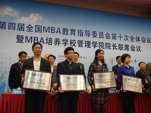 会上,全国MBA教育指导委员会及中国管理案例共享中心对组织参加第三届全国百篇优秀管理案例评选工作中表现突出的院校进行表彰,并颁发“最佳组织奖”奖牌。我校以2篇案例获选百优、7篇案例进入案例库的优异成绩名列其中,接受颁奖。