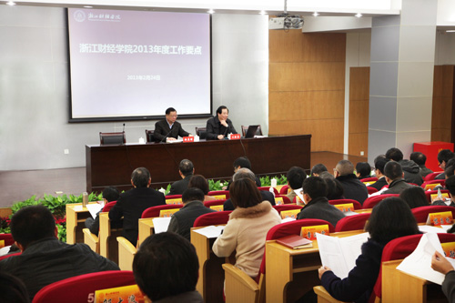 韩翼祥书记在会上强调,今年是全面贯彻党的十八大精神的开局之年,是深入实施“十二五”发展规划具有承上启下意义的关键之年。为进一步扎实做好学校2013年度各项任务,他提出五点要求:一是深入学习贯彻党的十八大精神,进一步增强加快学校发展步伐的紧迫感和责任感。以科学发展观为指导,联系学校改革发展实际,全面加强党的建设。二是突出重点,开创学校各项工作的新局面。加强学科和学位点建设,进一步提升学校的办学水平和竞争力;加快人才队伍建设步伐,加大高层次人才引进力度,花大力气培养领军人才;深化教学改革,提高教学质量,完善课程体系,改革培养模式,建立健全具有我校特色的人才培养模式;紧紧围绕浙江“四大国家战略”和经济社会发展需要,增强服务地方经济社会发展的能力。三是深化校内管理体制改革,不断激发学校办学活力。要立足校情和改革实际,着力于解决发展中的瓶颈问题,充分调动各级组织和个人的积极性。四是切实加强党的建设,为学校发展提供政治保障。认真做好中层干部第五轮换届选聘工作,为实现学校发展目标提供坚强的政治和组织保证;扎实推进服务型基层党组织建设,努力建设一支服务型党员干部队伍,着力提高基层组织服务中心、服务大局、服务师生的能力和水平;积极做好师生思想政治工作,进一步强化立德树人,继续推进文明寝室建设。五是进一步加强领导班子和中层干部队伍建设,努力提高干部领导学校科学发展的能力水平。他希望全体中层干部,逐条落实中央“八项规定”,大力改进工作作风;自觉克服形式主义,在求真务实上下功夫,把时间和精力更多地用到推动事业发展上;切实加强学习,多思考问题,进一步提升教育理念;坚定不移地推进反腐倡廉,做好重点领域和项目的廉政风险防范。