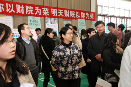 3月26日,我校在东体育馆举办了2013届毕业生春季招聘会。此次招聘会吸引了包括浙江泰隆银行、蒙牛集团、浙江特产集团、盛达期货等在内的322家企业参加,共提供了6000多个岗位,涉及会计学、金融学、审计、人力资源等多个专业。