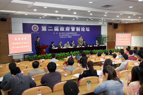 4月27日,“第二届政府管制论坛”在我校隆重举行,来自住房和城乡建设部、中国人民大学、首都经济贸易大学、东南大学、辽宁大学、东北财经大学、江西财经大学、北京工商大学、广西民族大学、浙江工业大学、浙江工商大学、济邦咨询公司等单位,从事城市公用事业政府监管领域研究的70余位知名专家、学者出席了此次论坛。