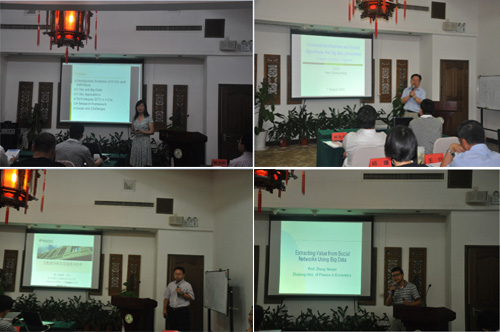 在论坛报告环节,美国西佛罗里达大学卫军教授以“I-City with Big Data”为主题,阐述了城市从“D-City->S-City->I-City”的发展进化过程,着重介绍了大数据技术在智慧城市的应用现状,并就大数据未来发展趋势进行了展望。台湾亚东技术学院洪维强副教授、美国弗吉尼亚理工大学樊卫国教授、ued体育 信息学院张文宇教授分别作了以“大数据技术在电力负载预测领域的应用”、“大数据分析发展现状和趋势”、“Extracting Value from Social Networks Using Big Data – Two Case Studies”为主题的精彩报告。