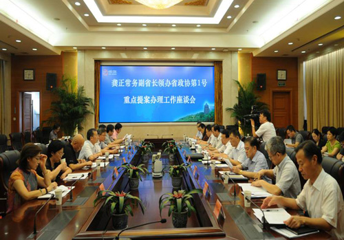 根据省政府、省政协关于重点提案办理工作的有关要求,龚正常务副省长于9月12日在省行政中心1号楼省政府常务会议室,召开省政协第1号重点提案办理工作座谈会,听取承办单位办理工作汇报,征求省民进、省政协以及提案人对办理工作的意见,督促落实办理工作。