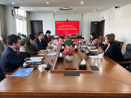 会后,班戈大学代表团一行与学校金融学院负责人等就中英金融学合作本科项目的人才培养方案修订、师资配备、学籍注册、成绩标准等事宜开展了深入洽谈。访问期间,代表团一行还参观了智慧教室、校史馆等设施。