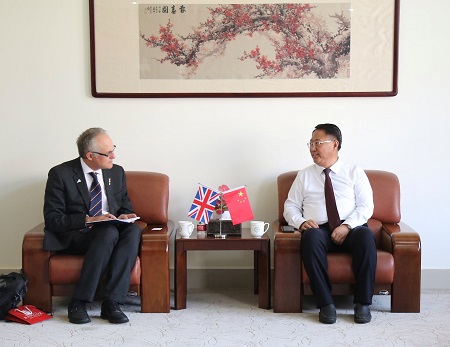 本网讯10月23日,英国班戈大学副校长保罗•范•嘉丁根、校办主任格维南•海恩等一行来校访问。副校长李占荣会见来访客人。
