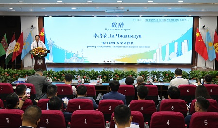 本网讯10月28日,中国(浙江)—哈萨克斯坦首届企业家研讨会暨第六届中哈经济社会研究论坛在下沙校区顺利举行。来自哈萨克斯坦、乌兹别克斯坦的20多位企业家、专家学者与40多位浙江企业家们,围绕“共建数字丝路、推进中哈合作”作专题交流。副校长李占荣、浙江省贸促会副会长葛学斌、哈萨克斯坦新丝绸之路协会会长达吾洛夫出席开幕式并致辞。中国驻阿拉木图总领馆与哈萨克斯坦驻上海总领事馆进行视频与贺信祝贺。开幕式由校党委委员、组织部、宣传部、统战部部长楼胆群主持。