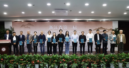 浙江省书协教育委员会副主任江吟,ued体育 党委委员、组织部、宣传部、统战部部长楼胆群为优秀组织奖获奖高校颁奖。
