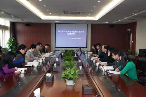 王俊豪校长首先对柳萍局长一行的到来表示热烈欢迎,并简要介绍了我校与浙江省物价局合作研究课题的进展情况。随后,柳萍局长对我校与省物价局的合作作了回顾与展望,介绍了近期与我校合作研究的课题背景与要求。龚源昌副局长对课题的合作研究提出了具体意见。我校经济与国际贸易学院朱晓艳副教授就浙江省与其他省份电力价格比较研究作了汇报。与会人员围绕浙江省与相关省份资源环境价格比较展开了热烈讨论。
