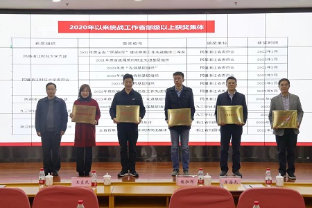 为表彰学校党外人士在参政议政、建言献策等方面做出的积极贡献,培训结束后,对我校近年来荣获省部级以上的统战先进组织和个人进行了表彰。校党委委员,统战部部长楼胆群为他们颁发了获奖铜牌。