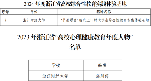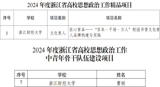 本网讯 近日,省教育厅公布了2024年度高校思想政治工作质量提升综合改革与精品建设项目等立项结果,学校4个项目入选。党委宣传部和图书馆申报的《匠心育品——“百本·千场·万人”校园书香文化育人品牌构建与实践》入选2024年度高校思想政治工作文化育人精品项目;学工部部长曹桢入选2024年度浙江省高校思想政治工作中青年骨干队伍建设项目;马克思主义学院申报的“‘书画绿富’临安上田村大学生综合性教育实践体验基地”入选2024年度浙江省高校综合性教育实践体验基地;心理健康教育中心施周婷老师入选2023年浙江省“高校心理健康教育年度人物”。这是学校在思想政治工作创新发展上取得的又一系列标志性成果。