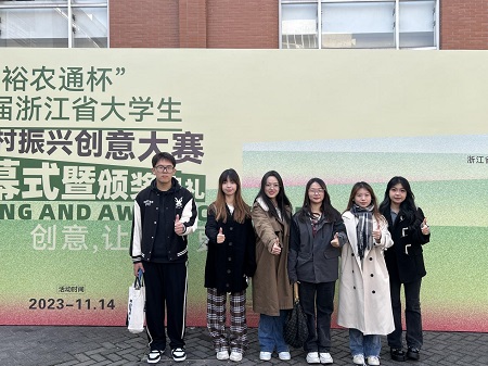 会计学院《寻梦金湾,聚焦共富——岭北盐焗鸡“出走”计划》获招标村乡村产业创意类金奖,金融学院《“百家福宴,匠心筑遗”——张宅村“百家宴”三融三层七联 文化品牌提升方案》获招标村乡村人文公益类金奖,艺术学院《日出桐照,渔晓新晏》获自选村乡村产业创意类金奖,《振兴非遗,点亮龙回 ——“12345”非遗赋能电商小村龙灯文化创意产业打造》获自选村乡村人文公益类金奖。