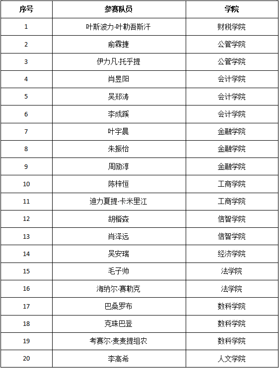 (大学男子校园A组)比赛获奖运动员名单