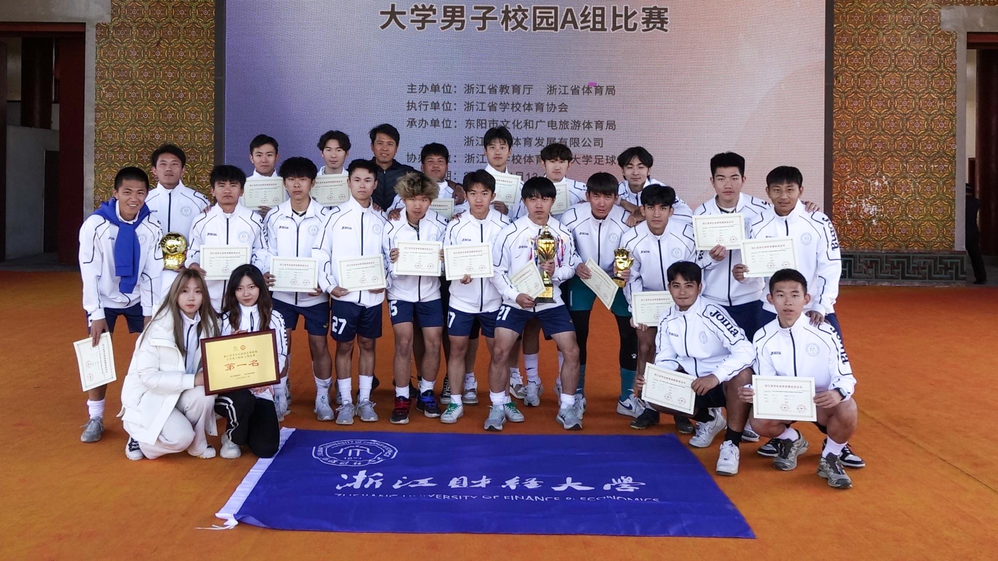 近日,2023年浙江省青少年校园足球联赛(大学男子校园A组)在浙江东阳举行。我校男子足球队在教练员赵泽溪老师的指导下,以全胜战绩斩获冠军,取得历史性突破。同时,海纳尔·赛勒克同学荣获“最佳守门员”,克珠巴登同学荣获“最佳球员”,赵泽溪老师荣获“优秀教练员”称号。