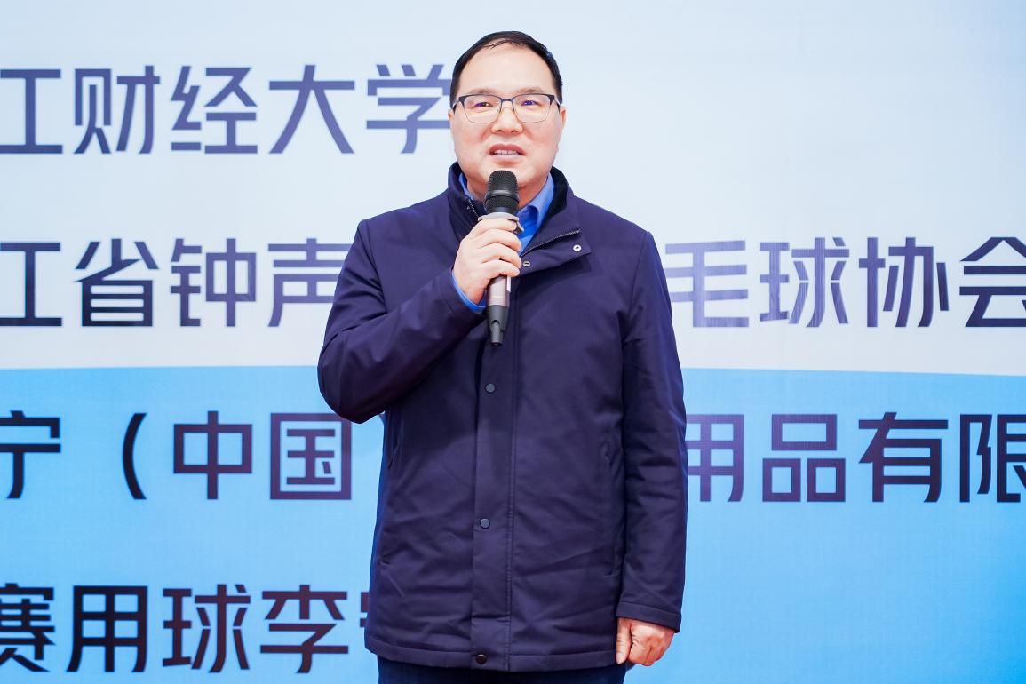 李金昌代表学校对各高校参赛队伍表示欢迎并简要介绍了学校的基本情况。他表示,浙江省“钟声杯”系列比赛是浙江省教育工会的品牌活动之一,也是目前我省教育系统规模最大、参赛队伍最多、水平最高的体育比赛之一。学校作为省“钟声杯”体育协会羽毛球分协会的主席单位,为推动全省高校羽毛球运动的开展发挥了重要作用。他希望广大参赛运动员以此次比赛为纽带,用汗水与激情诠释坚韧不拔、积极进取的体育精神和协同合作的团队精神,把运动的精神和力量融入到高校事业发展新征程。