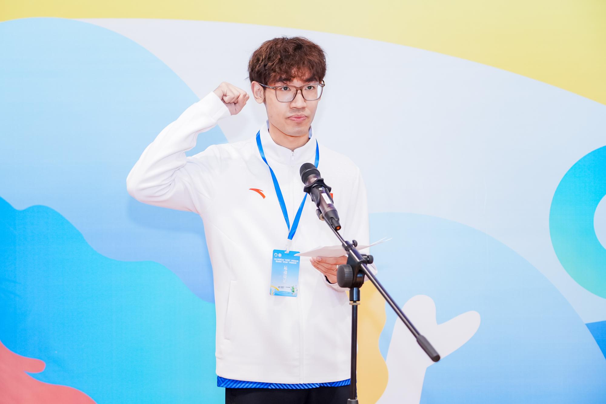 裁判员代表张芹、运动员代表王泽昌宣誓