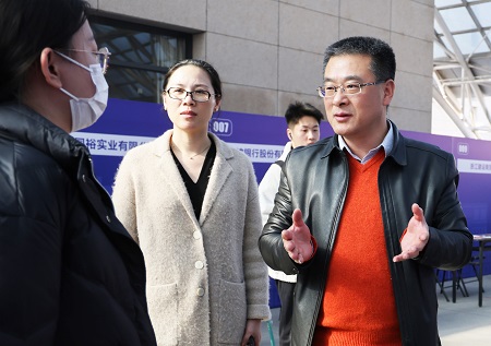 本网讯12月7日,学校2024届本科毕业生冬季综合招聘会在下沙校区举行。校党委副书记徐晓东深入招聘会现场看望慰问用人单位与会代表,了解用人需求,并与应聘毕业生亲切交谈。相关职能部门负责人、各学院分管学生工作副书记和毕业班辅导员等参加招聘活动。