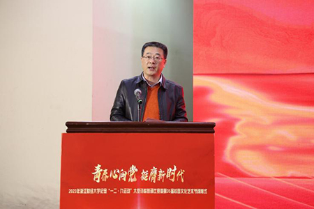 本网讯12月7日,“青春心向党,挺膺新时代”纪念“一二·九”运动大型诗歌朗诵比赛暨第35届校园文化艺术节闭幕式在学术一报顺利举办。校党委副书记徐晓东,相关职能部门负责人,兄弟高校专家,各学院分管学生工作负责人、团委书记和师生代表共500余人参加活动。