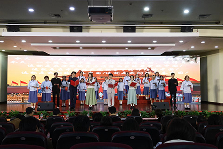 比赛中,铿锵有力的语调,朝气蓬勃的风貌,各参赛队伍不仅在朗诵形式上灵俏多变,还融入舞蹈、话剧、书法等元素,诵不尽拳拳爱国之心。无论是明烛长耀红船处、热风仍涌青春时的《红烛》《青春之歌:中国的辉煌与希望》,还是重温历史岁月、擘画华美盛世的《桐花万里丹山路》《跨越百年的对话》《锦绣山河盛世壮》,无不彰显了浙财学子中流击水的魄力和别具匠心的创新力。