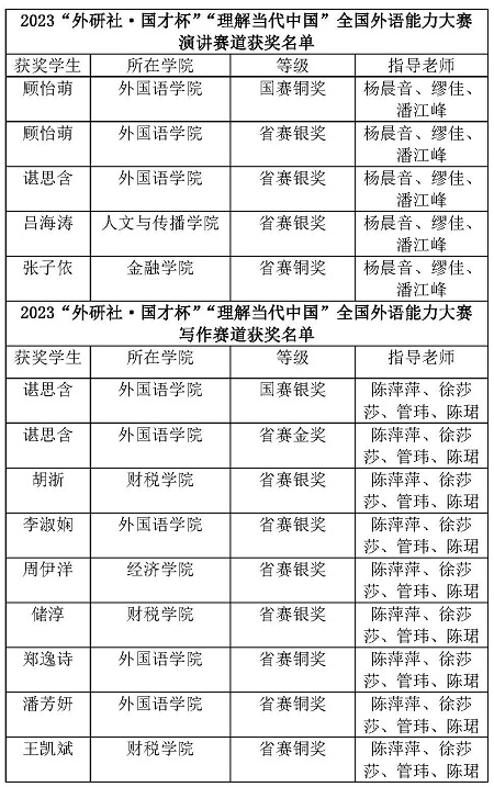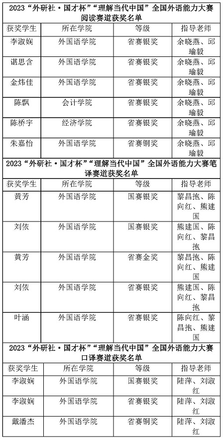 本网讯近日,2023“外研社•国才杯”“理解当代中国”全国大学生外语能力大赛(英语组)国赛落下帷幕。学校获银奖4项,国赛铜奖1项,省赛金奖2项、银奖15项、铜奖6项。