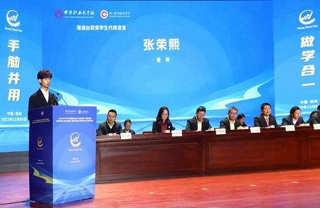 张荣熙同学代表港澳台选手发言。他认为,通过参与此次比赛,学会了如何管理风险,从失败中吸取教训,也学会了如何调整投资策略,更好适应市场变化。