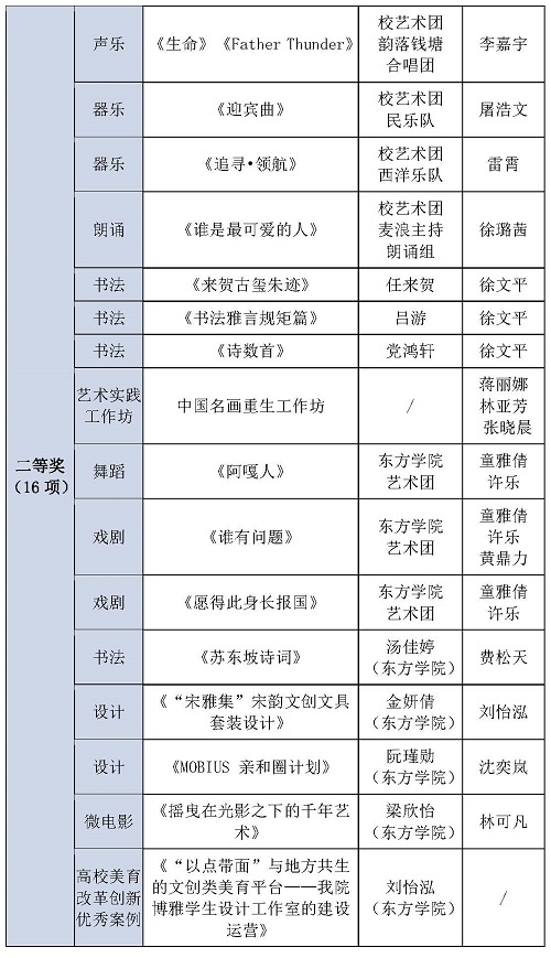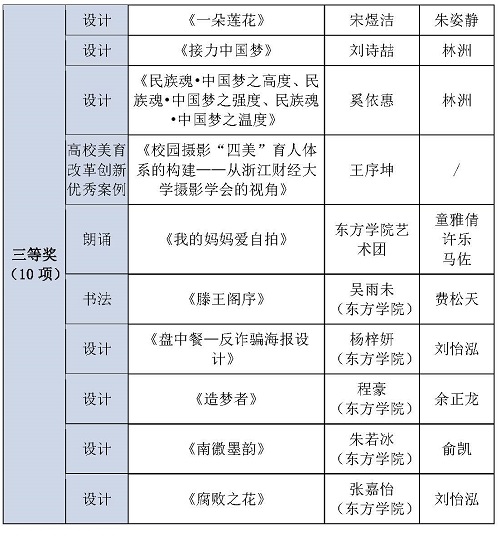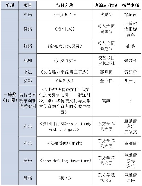 2023年浙江省大学生艺术节获奖名单