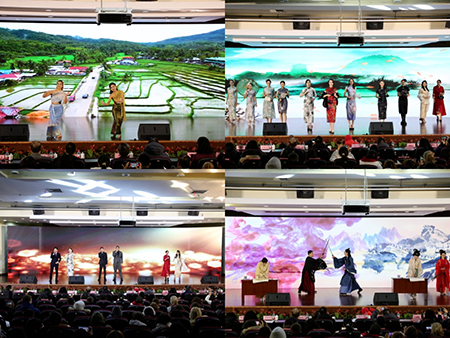 《异域风情秀》《花样年华》《汉风雅韵》展现了我校留学生多元文化特色与乐观向上的精神风貌。北京理工大学、对外经济贸易大学、浙江大学、浙江工业大学、浙江工商大学等高校国际教育学院领导以视频方式送来祝福,毕业留学生们也从不同国家发来院庆祝福视频。国际学院成立十周年院庆活动在留学生共唱《相亲相爱》中圆满结束。