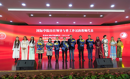 留学生还为国际学院历任领导、曾在国际学院工作过的教师赠送献花。