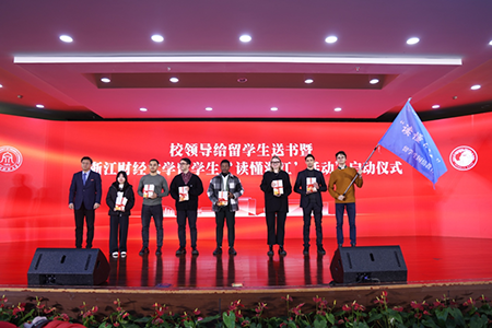 活动举行了留学生“读懂浙江”活动启动和赠书仪式。魏江亲手将“读懂浙江”留学生国情教育活动旗交到留学生手里,让留学生多走进浙江、了解浙江。