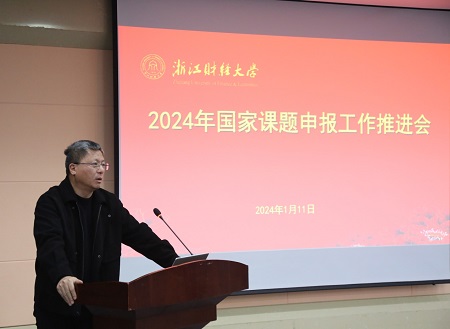 本网讯1月11日,学校召开2024年国家课题申报工作推进会。党委副书记、副校长(主持行政工作)魏江出席并讲话。副校长李占荣主持会议。