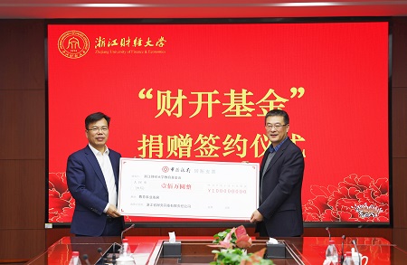 本网讯1月19日,浙江省财务开发有限责任公司捐赠签约仪式在下沙校区举行。浙江省财开公司向学校捐赠一百万元,支持学校办学。校党委副书记徐晓东,浙江省财开公司党委副书记、董事、工会主席李卫星等出席仪式。