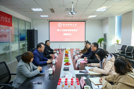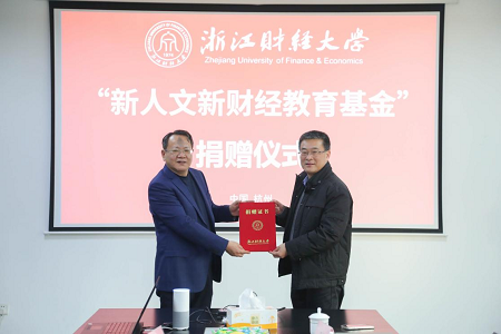 本网讯1月25日,“新人文新财经教育基金”捐赠仪式在杭州德创电子股份有限公司举行。杭州德创电子股份有限公司、杭州魔合数字技术有限公司与ued体育 共同设立“新人文新财经教育基金”。校党委副书记徐晓东、杭州德创电子股份有限公司董事长李云水出席仪式。