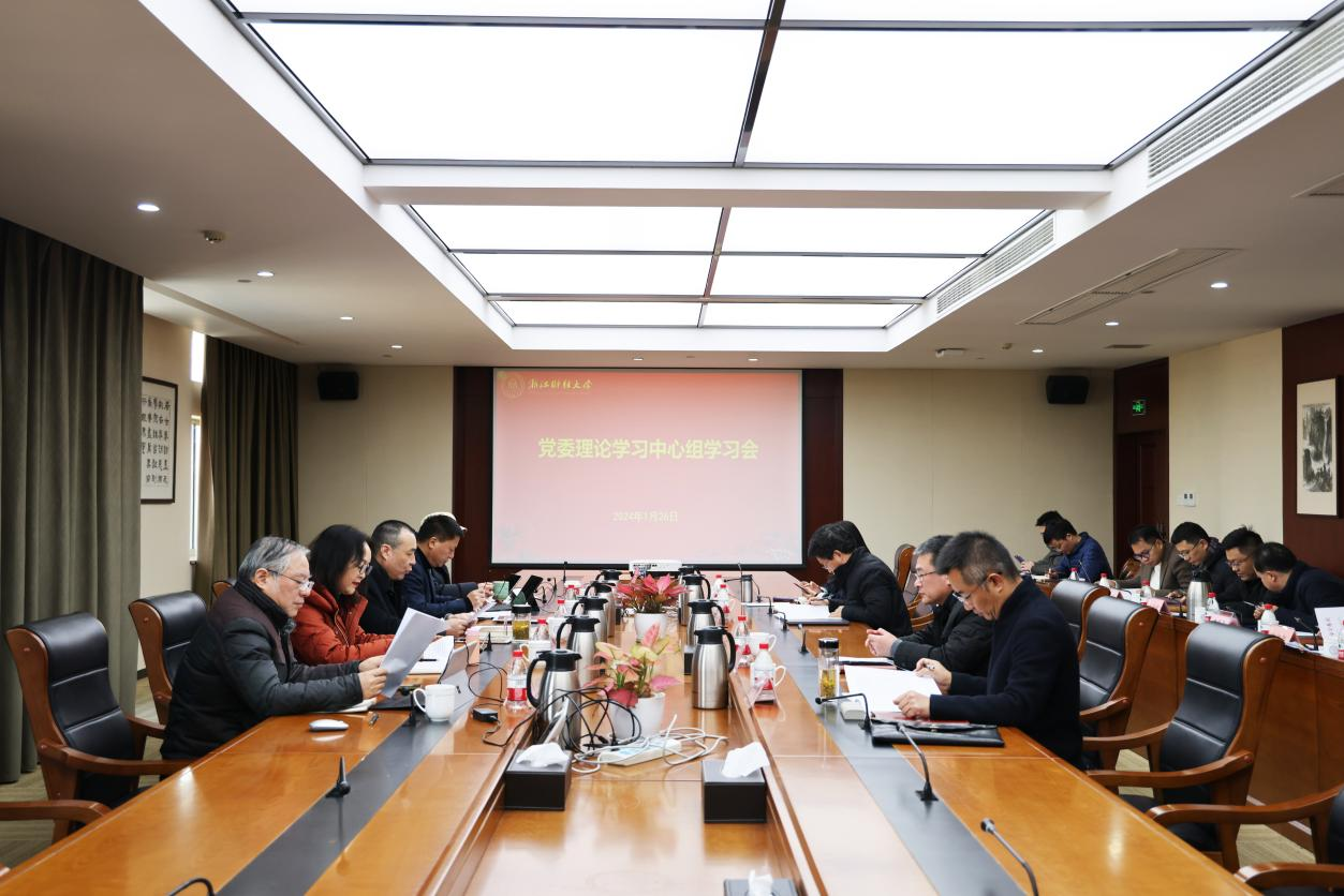 本网讯1月26日,校党委理论学习中心组召开会议,专题学习中共中央政治局专题民主生活会有关精神、习近平总书记在省部级主要领导干部推动金融高质量发展专题研讨班开班式上重要讲话精神、传达学习我省“两会”有关精神。校党委书记李金昌主持会议并讲话,魏江、郑亚莉、王奎泉、孙旭东、徐晓东、董进才、程爽、申屠莉参加学习。