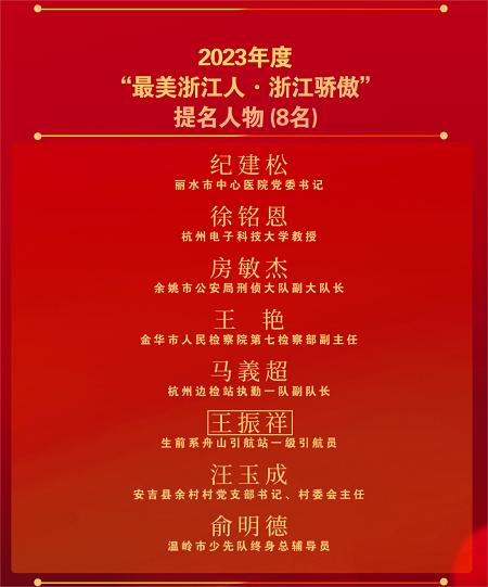 本网讯 1月26日,由省委宣传部、浙江广电集团主办,浙江电视台钱江都市频道承办的2023年度“最美浙江人·浙江骄傲”人物评选活动颁奖仪式在杭州举行。学校外国语学院2010届校友马義超获评提名人物。
