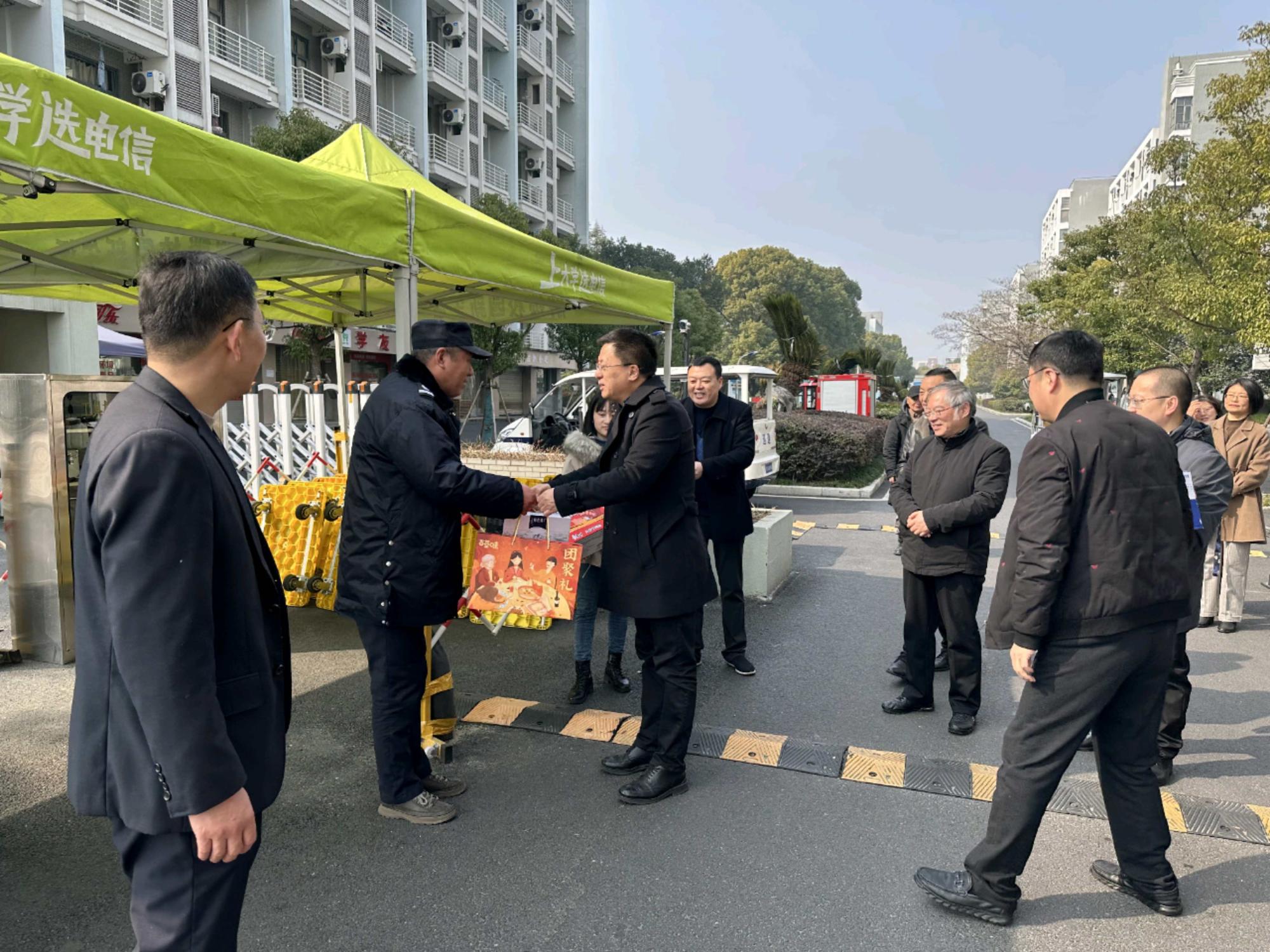 魏江一行还走访了紫元生活园区,慰问全体留守一线的员工,向他们致以新春的问候并送上暖心的慰问礼包。