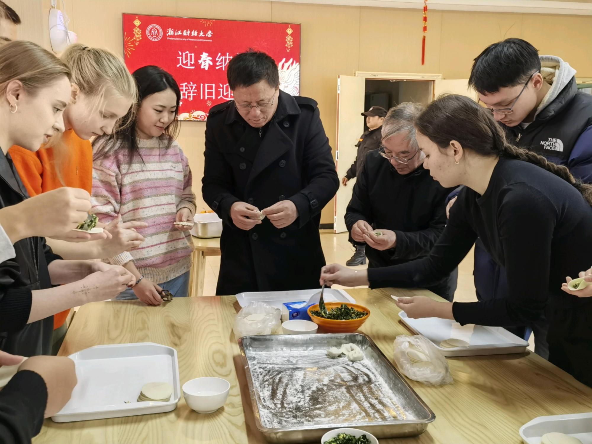 本网讯闻除夕团圆饭芳香四溢,听学术餐厅里欢声笑语。2月9日,校党委副书记、副校长(主持行政日常工作)魏江,党委委员、纪委书记孙旭东与留校学生、后勤和保卫等一线员工共进团圆饭,一起贴包饺子、包春卷、贴窗花,为大家送去学校的关爱和家庭的温馨。