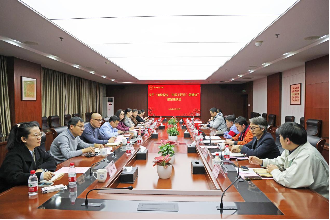 本网讯为深入贯彻落实习近平总书记关于“工匠精神”的重要论述和浙江省“新春第一会”精神,进一步做好全国两会提案建议准备, 2月28日,全国政协委员、民建浙江省委会副主委、我校副校长、浙江省中华职业教育社社务委员会副主任郑亚莉主持召开关于“加快设立‘中国工匠日’的建议”提案座谈会。杭州市钱塘区人民政府副区长、杭州市中华职业教育社副主任、杭州市钱塘区中华职教社主任潘伟红,浙江省中华职教社秘书处处长梁成岗应邀参会。