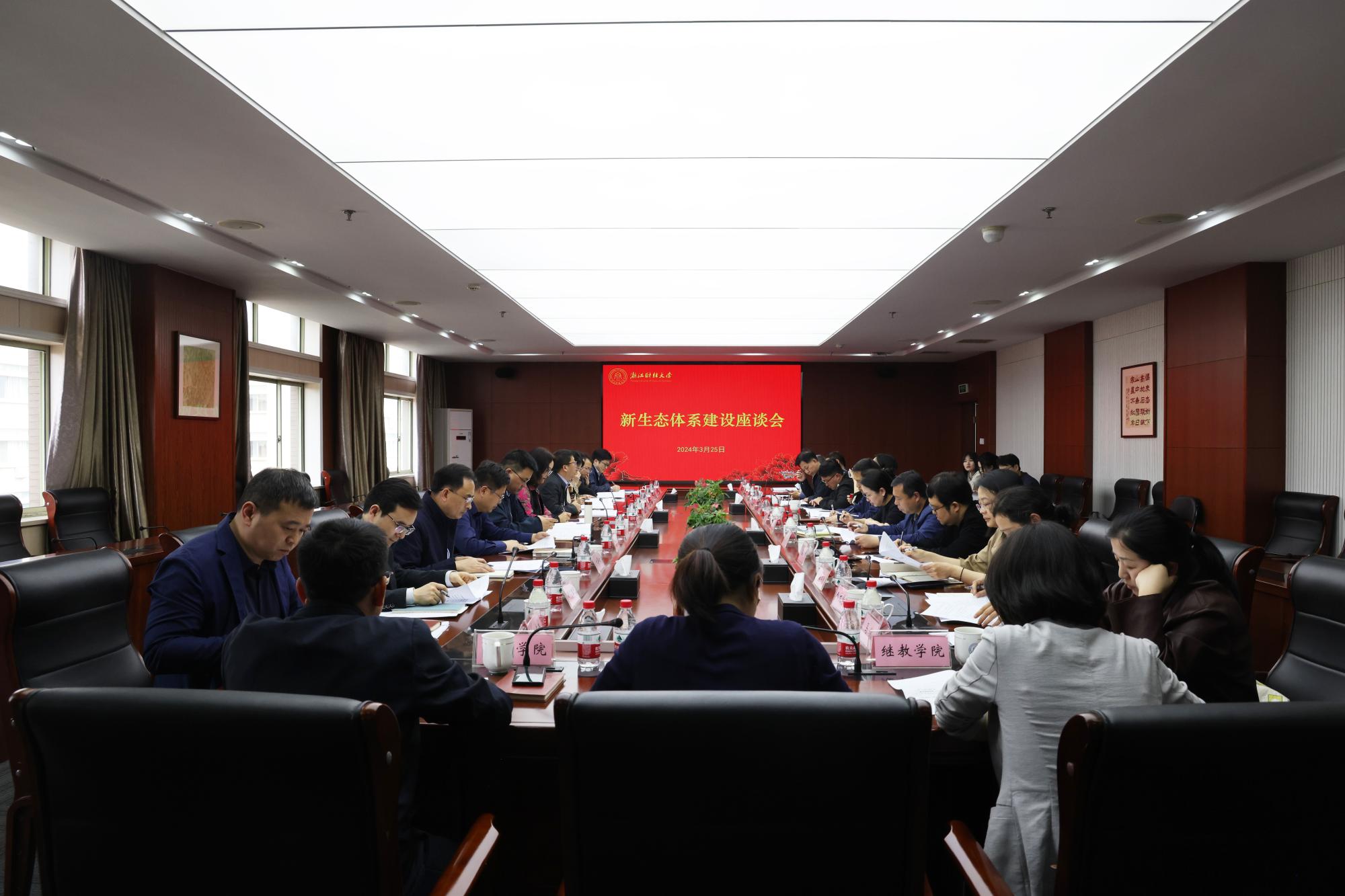 本网讯为积极贯彻落实“新财经战略”,不断深化合作、优化服务、汇聚资源,进一步提升学校服务国家战略和浙江“两个先行”能力,3月25日,学校召开新生态体系建设座谈会。副校长郑亚莉出席会议并讲话。社会合作处、组织部、宣传部、学生处、人事处、教务处、研究生院、国际处、校友办和各学院负责人参加会议。