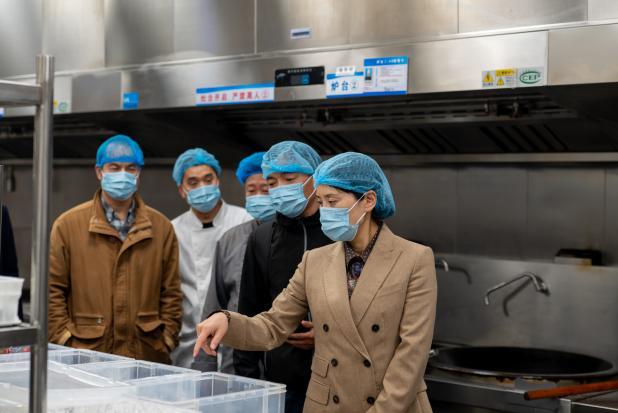 汤筱疏先后走访了校园门岗和学生食堂。她详细询问了校园安保措施和相关执行情况,重点检查了学生食堂原材料存放、设施设备卫生等食品安全情况。