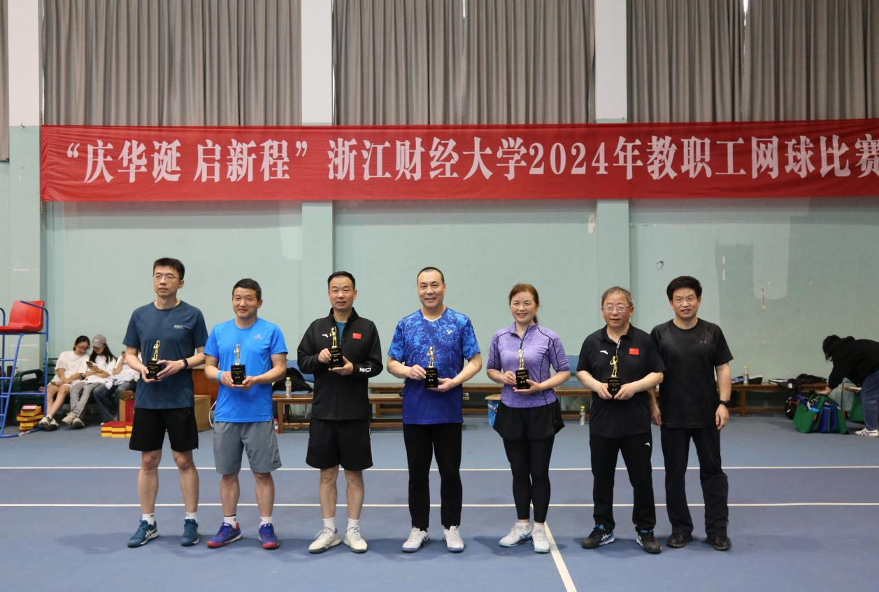 本网讯4月2日,由校工会、体育部主办的 “庆华诞 启新程”2024年教职工网球比赛圆满结束。李金昌、董进才、程爽、申屠莉等校领导班子成员亲临比赛现场并为参赛选手加油助威。