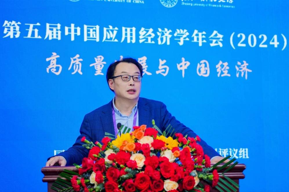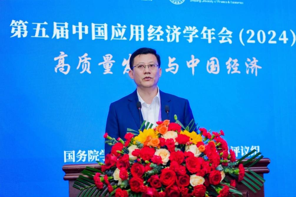 4月14日,主题为“高质量发展与中国经济”的第五届中国应用经济学年会(2024)——大会论坛在下沙校区举行。五位国务院学位委员会应用经济学学科评议组成员——北京大学光华管理学院教授龚六堂,复旦大学经济学院副院长张金清,天津财经大学副校长马亚明,辽宁大学亚澳商学院院长赵德起,北京交通大学经济管理学院教授张秋生,以及吉林财经大学党委书记孙杰光,西南财经大学副校长王擎,东北财经大学副校长王伟同,中国人民大学劳动人事学院院长赵忠分别做报告。国务院学位委员会应用经济学学科评议组秘书长、中央财经大学校长马海涛主持大会论坛。