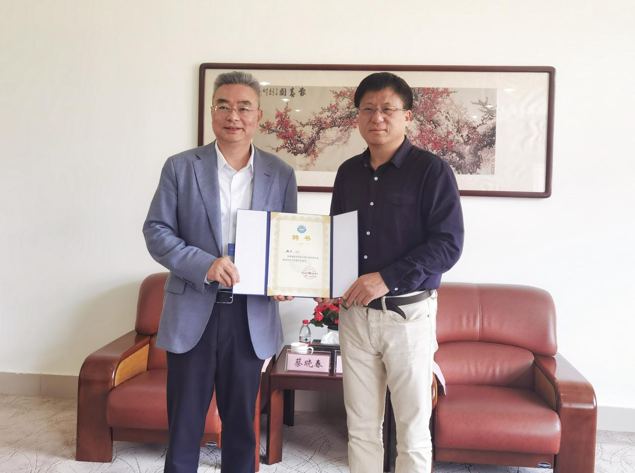蔡晓春给魏江颁发“省工商联数字经济工作委员会顾问”聘书。